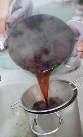 Dans l’atelier de teinture, telles deux joyeuses chimistes, on expérimente mille et une recettes et on a plusieurs casseroles sur le feu! Ce n’est pas du tout le même travail de sortir un bleu indigo, un rouge garance ou un jaune bourdaine… Certaines plantes doivent être traitées selon des paramètres très méticuleux, des dosages précis d’ingrédients, PH et températures de bains à contrôler. En teinture naturelle tout ne se vaut pas, certaines couleurs sont plus précieuses que d’autres.