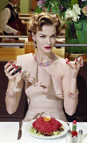 Lorsqu’elle parle des photographes qui l’inspirent, Lisa Carletta cite en particulier leur qualité de « story-teller ». Selon elle, le spectateur devrait pouvoir – à partir d’une scène – inventer ou deviner une histoire autour d’une photographie. Dans ce sens, le soin accordé aux détails et l’angle de prise de vue doivent révéler un synopsis tout en effaçant la présence du photographe. Dans l’oeuvre de Miles Aldridge, un décor rétro-pop abrite des femmes à la fois glamour et absentes, dans des situations quotidiennes. On retrouve cette inertie chez Lisa Carletta, où la femme est un personnage décoratif, une sorte de statue. Elle ne participe pas à l’action, la vie semble continuer autour d’elle tandis qu’elle est dans ses pensées, dans sa bulle.