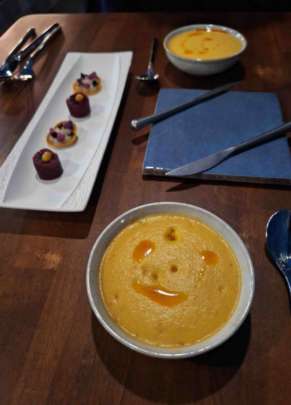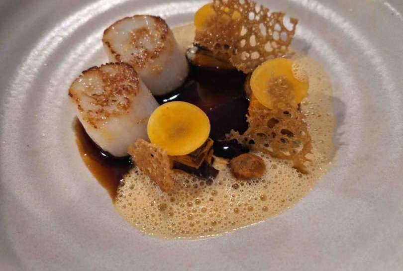 Dès les mises en bouche (espuma de butternut aux algues twisté de curry rouge et d’huile pimentée, puis maki de betterave et dulse, cette algue rouge qui sent bon la Bretagne), le message est clair : Benoît propose une bistronomie contemporaine, dépouillée, affûtée, iodée.