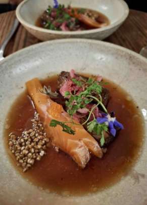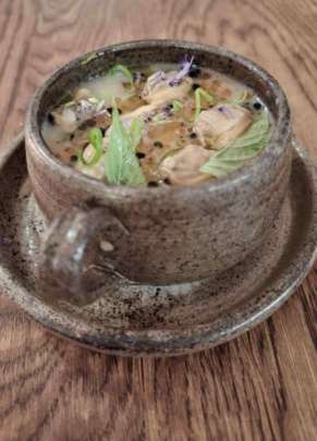 Une soirée sans fausse note : cuisine délicieusement créative, pickles maison, lactofermentation maîtrisée, et bel équilibre entre influences méditerranéennes et japonaises. Tout en subtilité, sans jamais forcer le trait. Franchement, bravo !