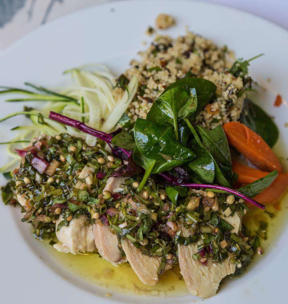 Situé près de la place Van Meenen à Saint-Gilles, ce resto sans chichis propose une cuisine savoureuse, de la belle ouvrage constituée de bons produits, la carte change chaque semaine. En entrée, un millefeuille de betteraves, oeufs, sauce tartare. Au choix deux plats : un maquereau breton, carottes, sauce vierge à la verveine, succulent ! Ou un poulet, boulgour iranien, sauce crue aux deux coriandres et amarante (photo). En dessert, un riz au lait au beurre de caramel salé. Le lunch est à prix démocratique et le soir, il vaut mieux réserver. Ici, on aime les artistes. La façade est de Bonom et dans le resto, un artiste expose chaque mois ses oeuvres au mur. À chaque nouvel accrochage, une carte postale est éditée. Il y a même des T-shirts « Tous des zinnekes » avec Le Damoiselle en vedette à acquérir pour une somme modique.
