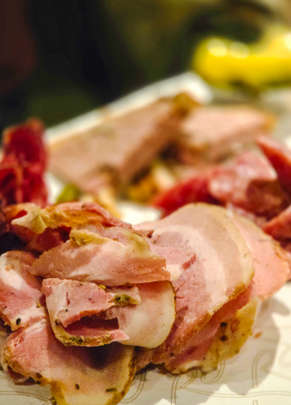 Accompagnée d’un très beau plateau de salaisons et charcuteries confectionnées par l’atelier Dierendonck (boeuf séché, pâté en croûte, jambon roulé aux herbes, saucisson,…), on fait trempette avec de jolis croutons moelleux ou – oh bonheur – des petite pommes de terre fondantes… notre choix a été vite fait: nous on aime les patates!!!