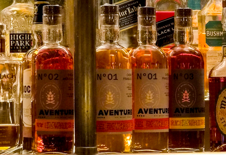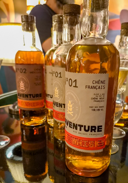 Derrière ces whiskies, une belle et longue histoire d’amitié, et surtout un travail artisanal précis : deux brassins et deux distillations par semaine, un alambic hybride en cuivre, et un vieillissement marqué par des variations d’hygrométrie et de température extrêmes dans le chai ‘ouvert’ qui les accueille, à surveiller de très près tout comme la “part des anges” qui peut atteindre 20 à 30 % sur les 3 à 5 années de maturation des breuvages. Un choix artisanal assumé, qui confère aux whiskies Aventure leur intensité, et leur signature.