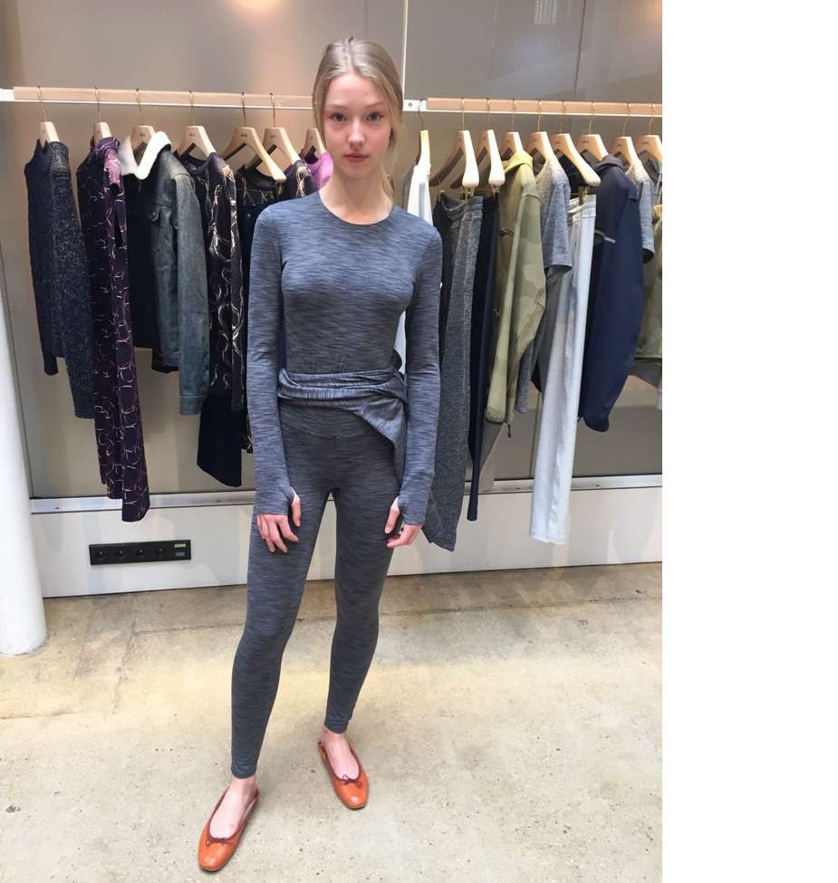 Après une présentation à New-York, la collection A.P.C. and Outdoor Voices, label américain de vêtements de sport, c’est à Paris de découvrir le gris chiné du tissu technique.
