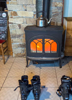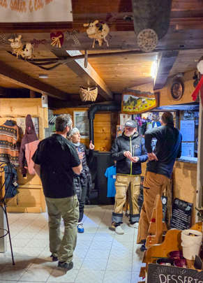 Jérôme nous y accueille chaleureusement, et nous installe dans le confort rustique de son refuge. Canapés confortables, poêle crépitant pour chauffer la demeure, et chambres (doubles ou dortoir) simples mais confortablement aménagées.
